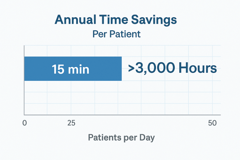 For instance, even a modest 15-minute time saving per patient in a clinic serving 50 patients per day equates to more than 3,000 hours per year. Those hours represent saved labor, faster treatment cycles, and greater patient satisfaction — all measurable and meaningful outcomes.